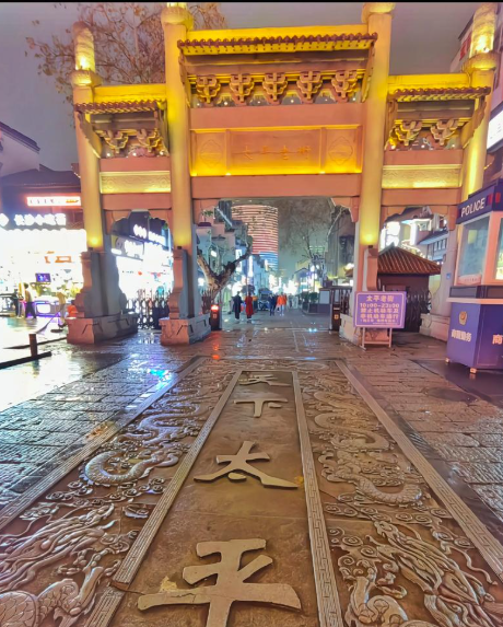推荐一条高效逛吃路线:从地铁1/2号线五一广场站出站,可先打卡IFS七楼KAWS雕塑,随后沿解放西路步行5分钟直达太平街牌坊。