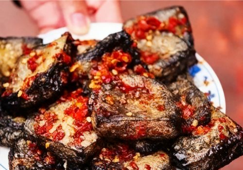 最后一站前往新胜村2号巷子的五娭毑臭豆腐,这是一家老店,坚持传统制作工艺。 臭豆腐经秘制卤水发酵45天,再以180℃茶油炸至焦黑酥脆,外皮坚硬,内里保持豆腐脑般的嫩滑质感。