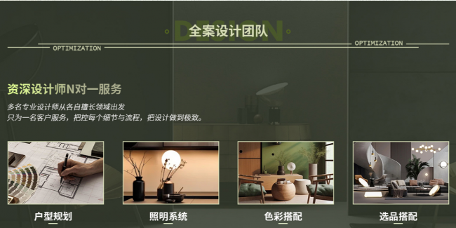 “1+N”的专属服务模式:1名主案设计师主导,搭配多名专项设计师协同,一对一专属服务,拒绝模板化设计,精准匹配个性化需求,实现“一户一方案”。